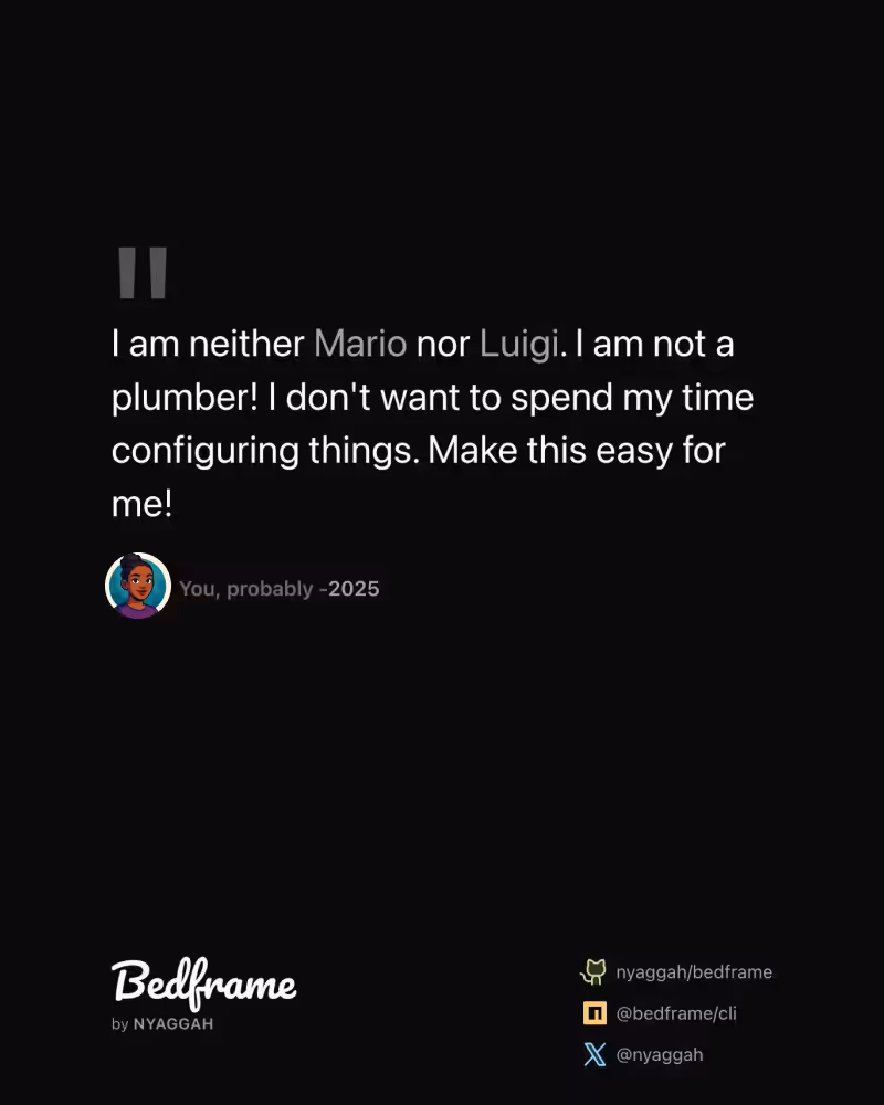 Bedframe isn't the thing—it's the thing that helps you make The Thing™. It's a shovel for your shovel, built for the builders already out there digging fast and deep.